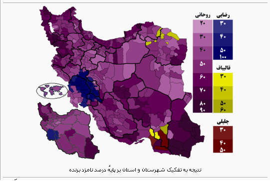 نتایج نهایی شمارش آرای انتخابات ریاست جمهوری یازدهم، بنفش اعلام شد
